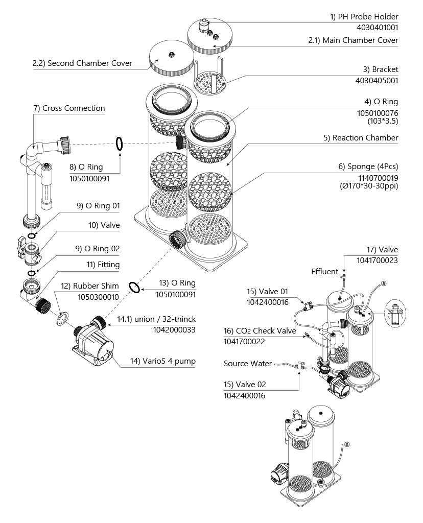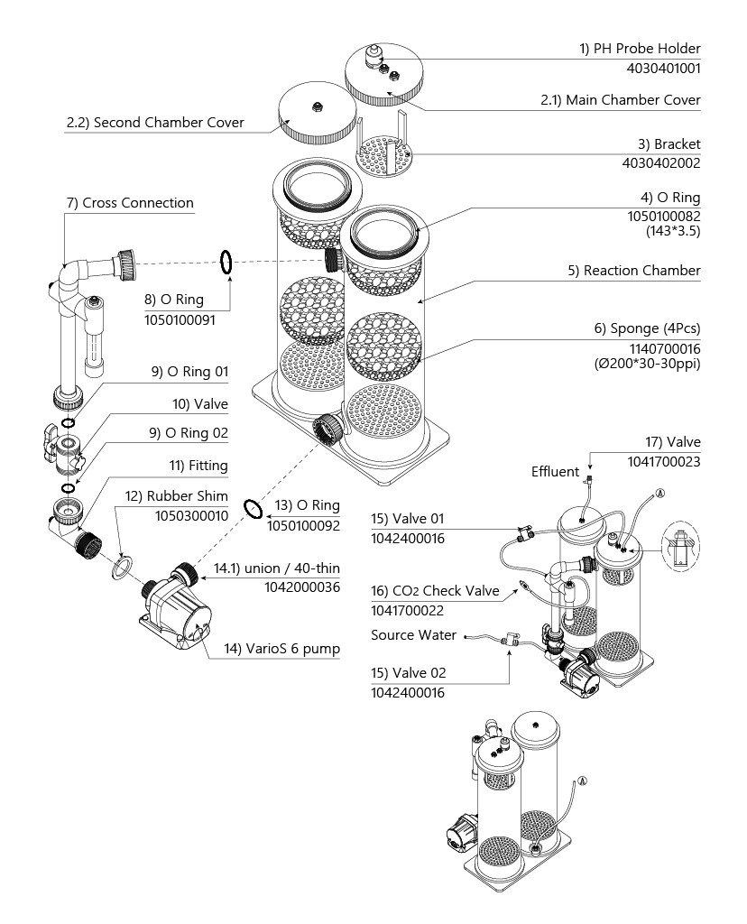 OCTO CalReact features high-quality cast acrylic body construction, a PH probe holder to allow constant monitoring of water alkalinity (PH level) with the use of a PH probe (sold separately), a built-in bubble counter for CO₂ flow rate calculation, reverse water flow for CO₂ recirculation to maximise contact time with the coral media which produces CO2.